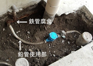 - 水道本管の錆びつき。